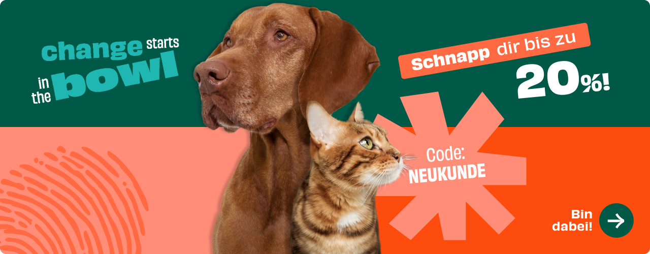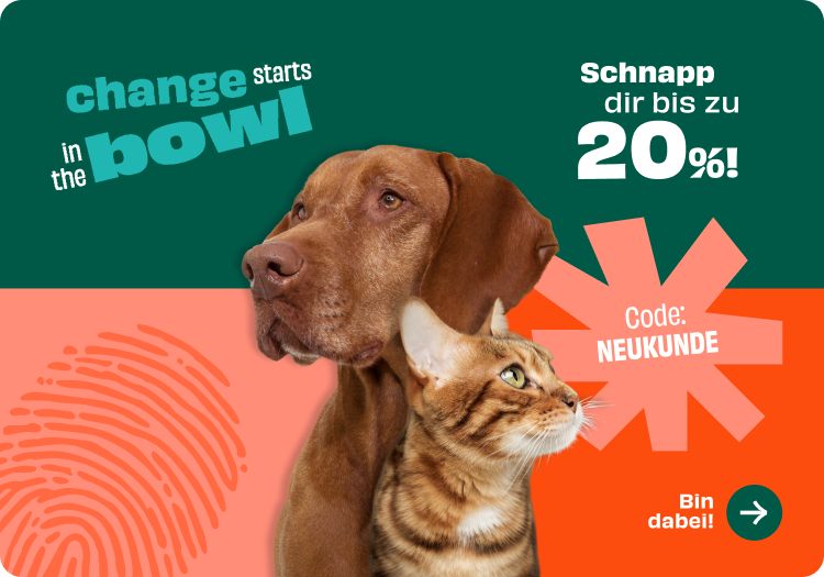 Sei jetzt ein Teil des Changes und schnapp dir 10 % auf Hunde- und Katzenfutter im Green Petfood Onlineshop!